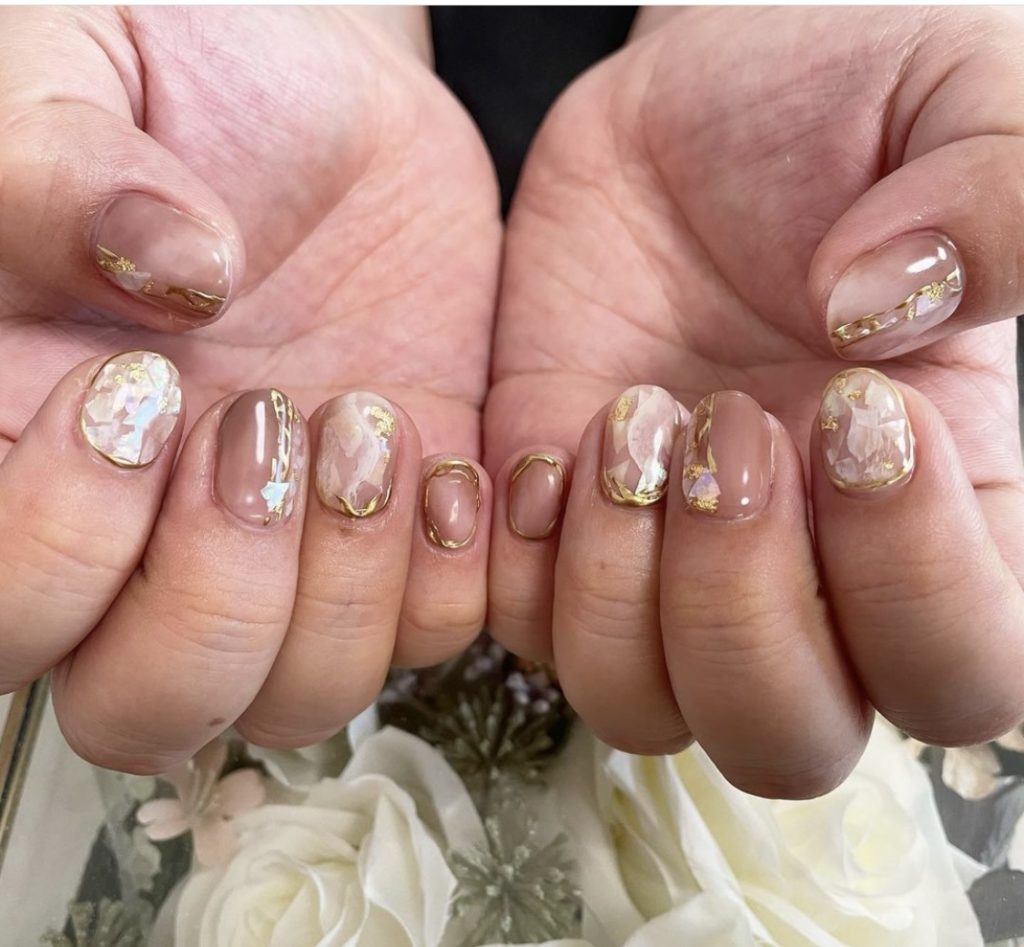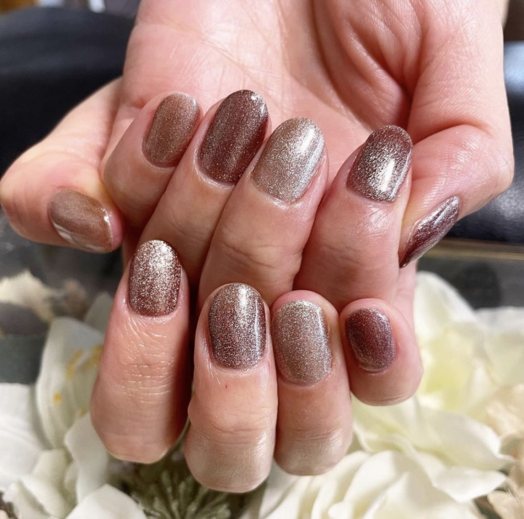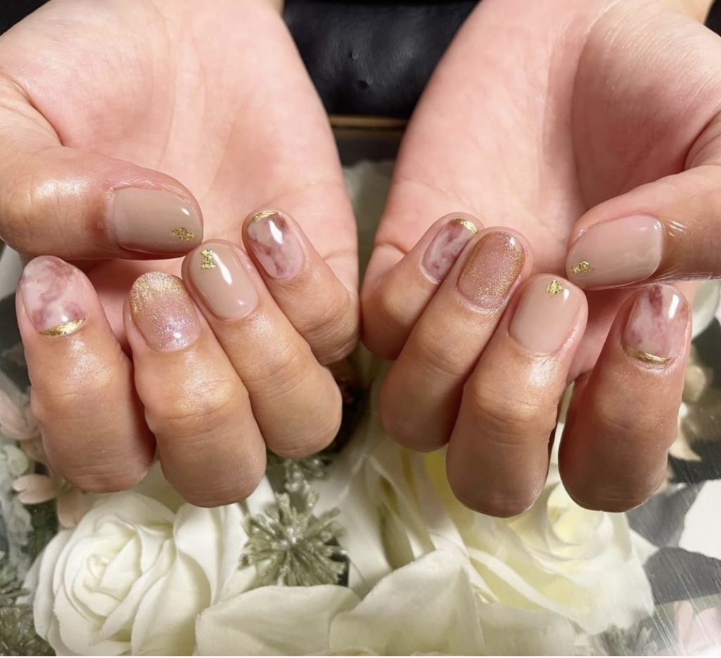 グレージュやマーブル.マグネットをmixしたニュアンスデザイン🧸❤️❤️
