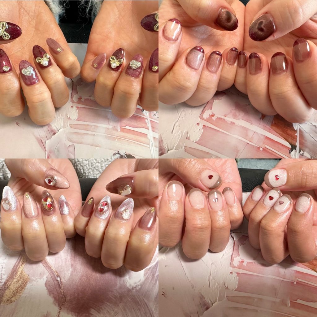2024.02.16 Heart♡design ブログ 今流行りのハートデザイン♡ バレンタインの後でも冬服に合う 色合いのハートネイルが人気でした♡ お客様からいただいた 美しいチョコレート🍫 嬉しいバレンタインでした♡