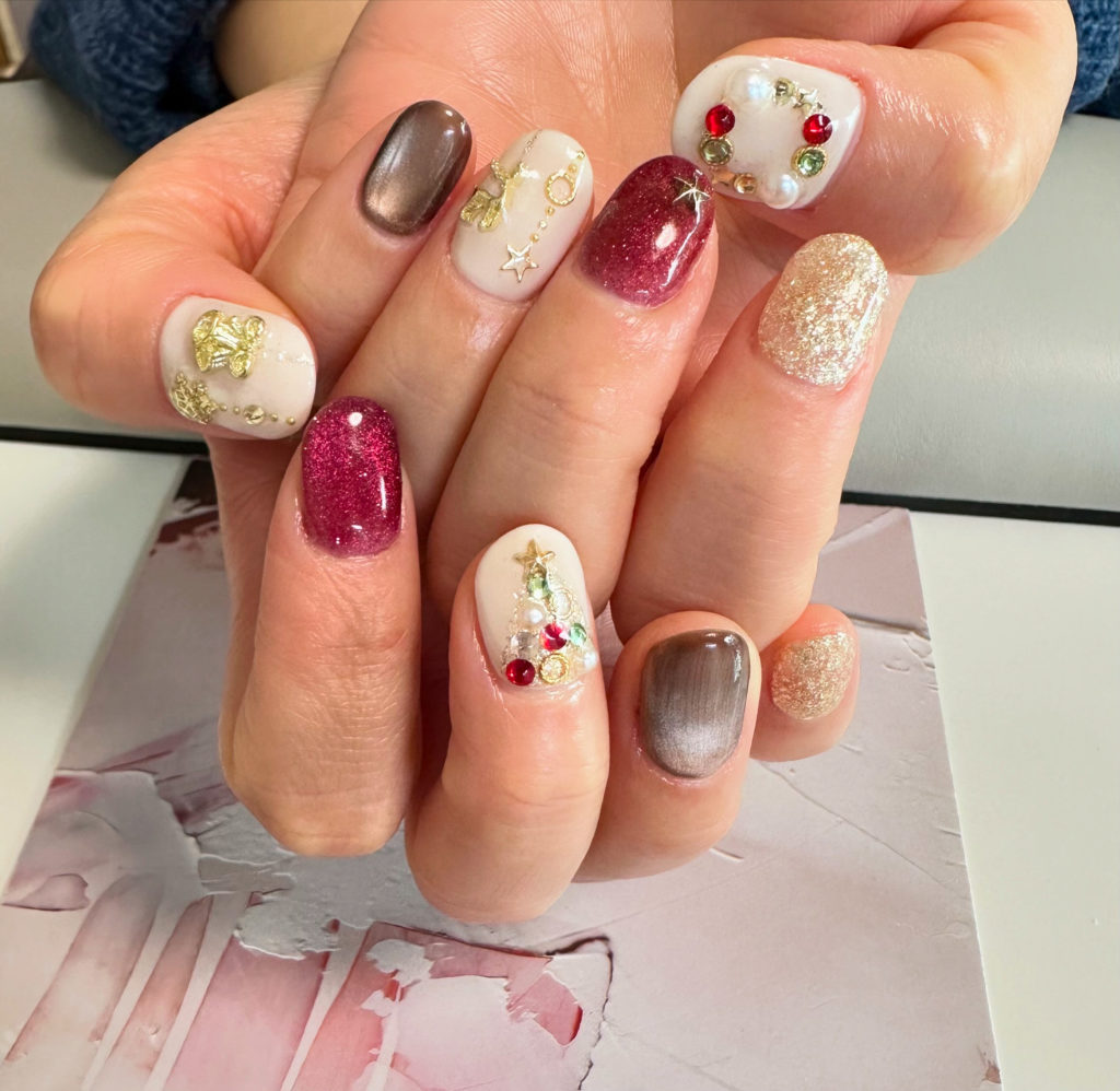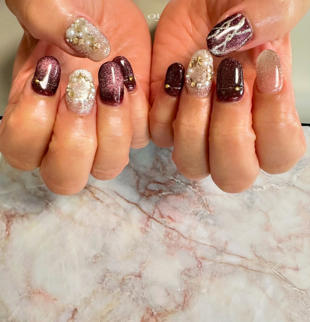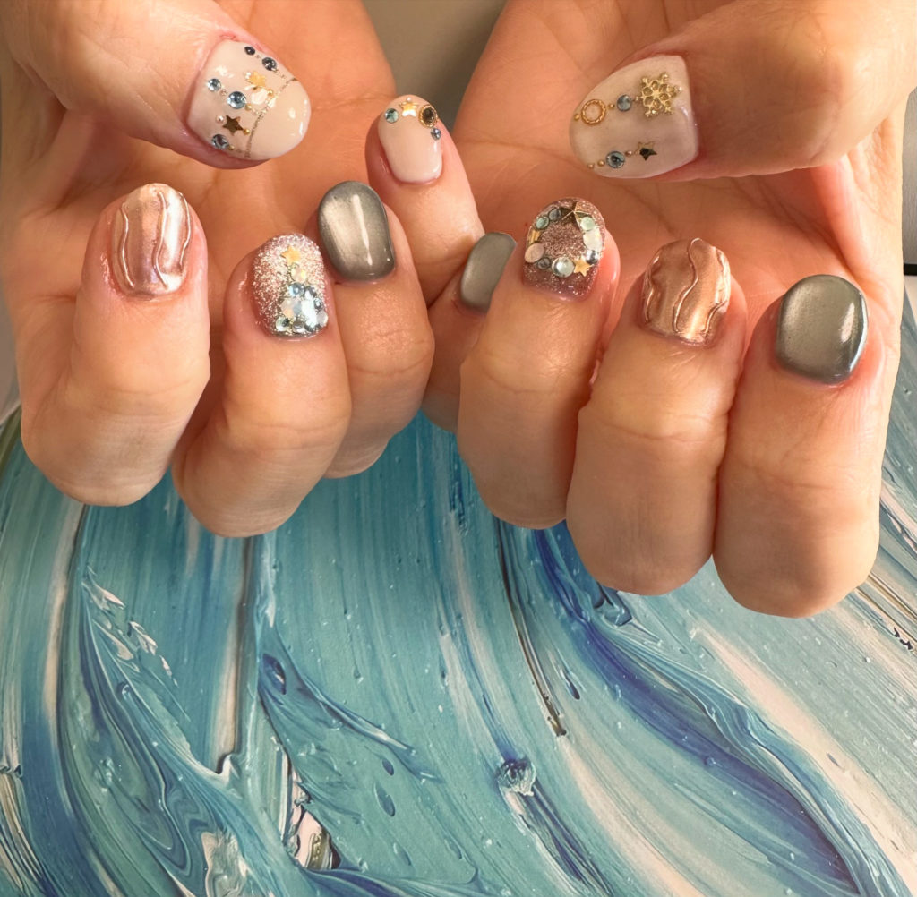 親指のお持ち込みパーツに合わせて左右色違いに♡